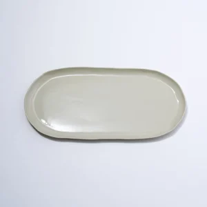 Hand cast ceramic plate with a subtle irregular shape.36 x 17 x 1.5cmAll of our ceramics are safe for both the microwave…