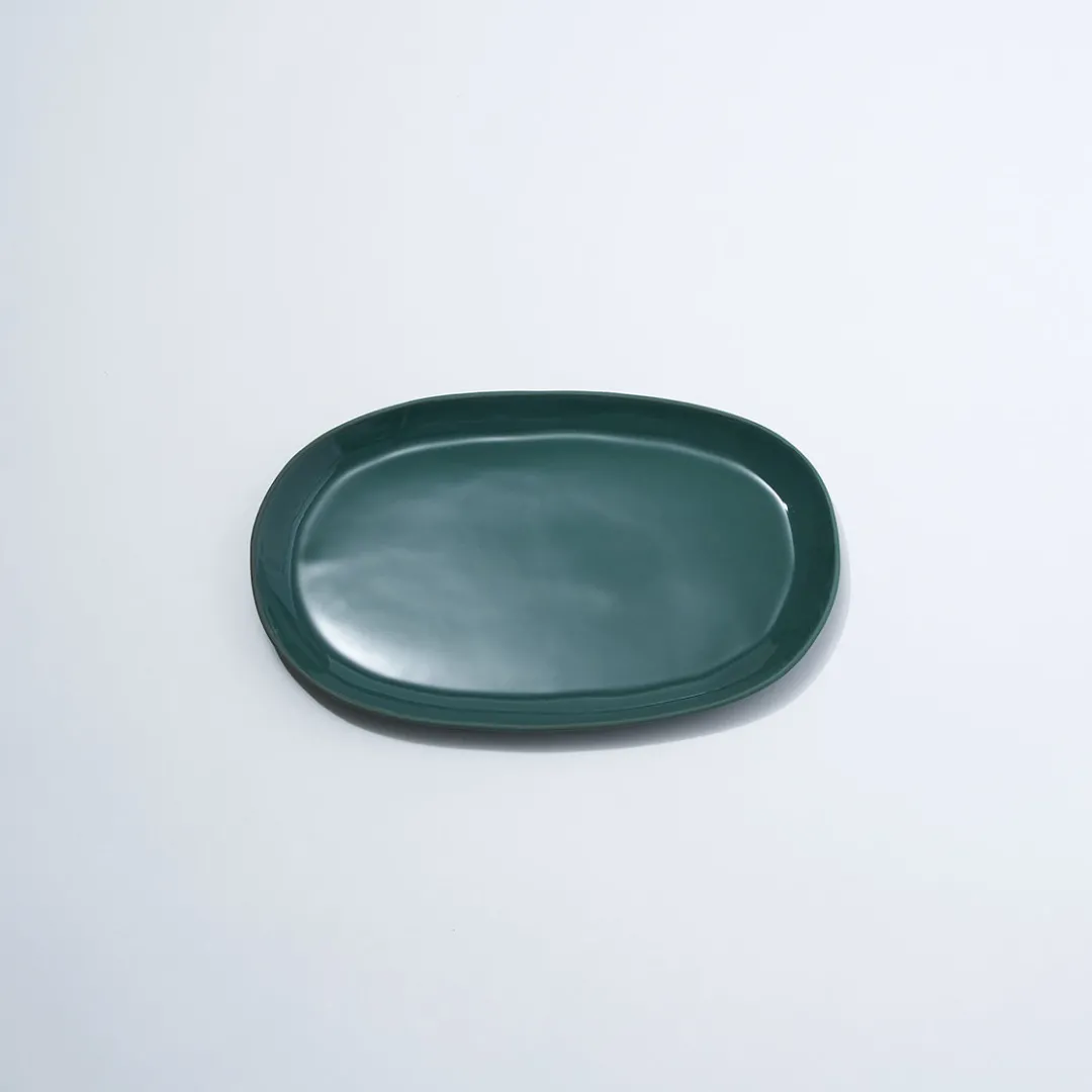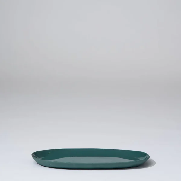 Hand cast ceramic plate with a subtle irregular shape.25 x 15 x 1.5cm