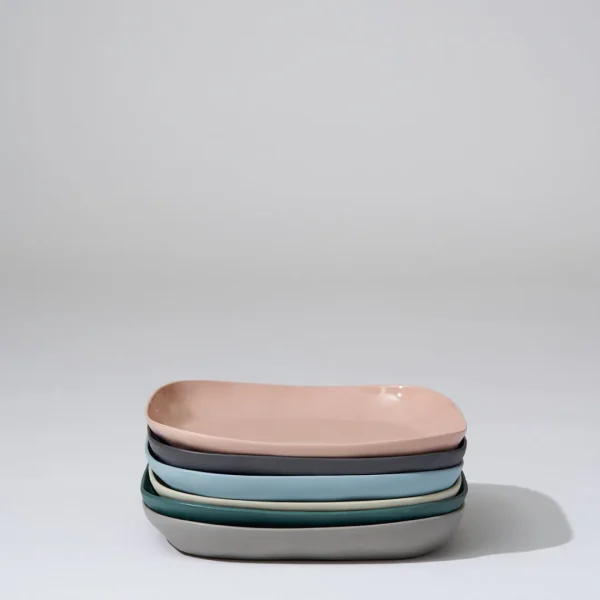 Hand cast ceramic platter with a subtle irregular shape.21 x 21 x 2.5cm