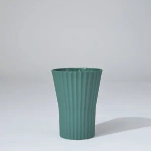 Hand cast rippled ceramic vase.13cm x 13cm x 17cm