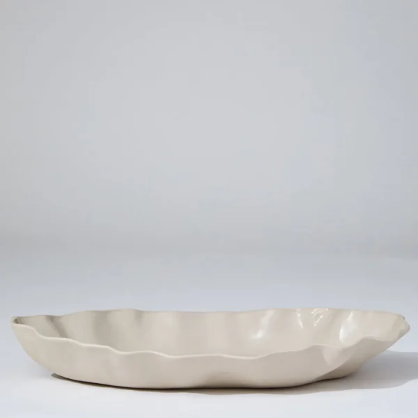 Hand cast ceramic platter with a subtle irregular shape.42cm x 24cm x 6cm