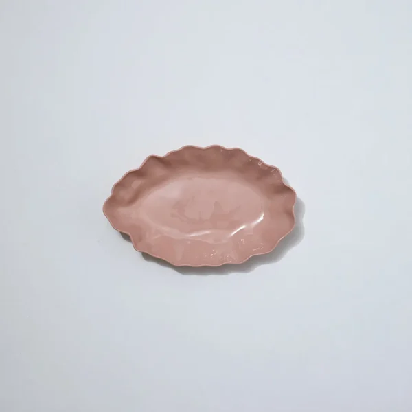 Marmoset Found Serving Platters & Trays | Ceramics | Ruffle Rectangle Platter Icy Pink (M)