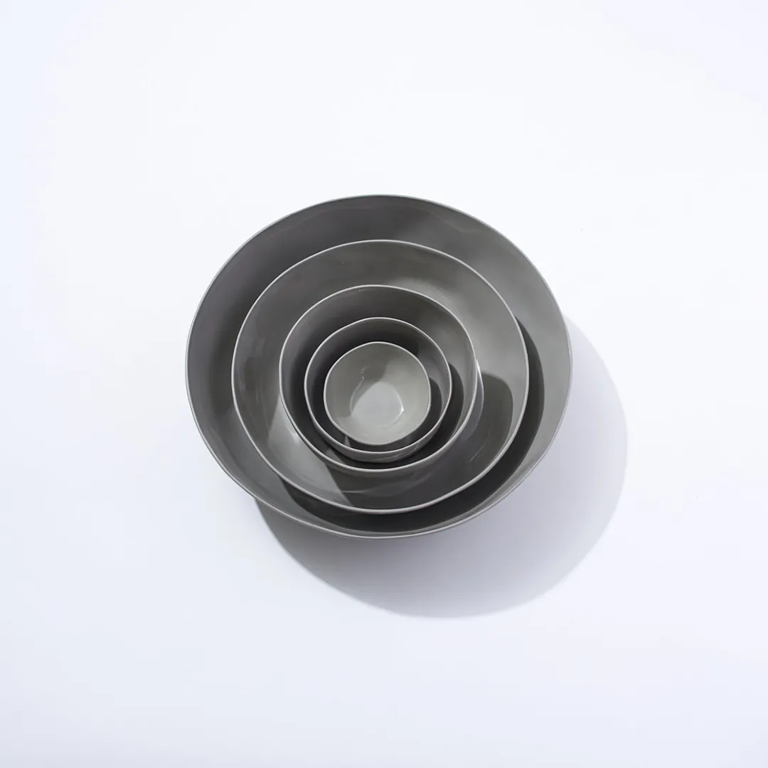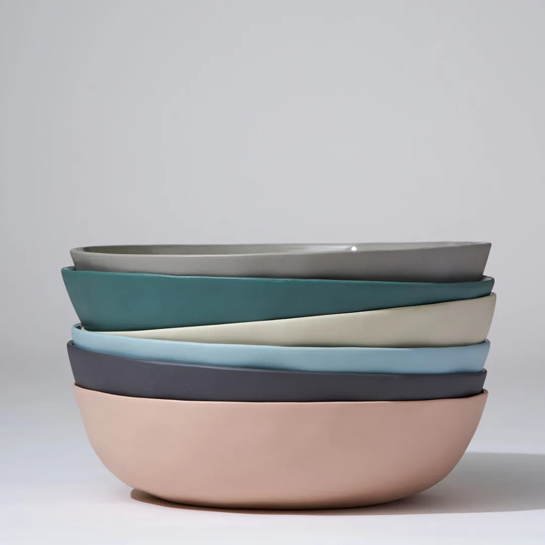 Hand cast ceramic bowl with a subtle irregular shape.