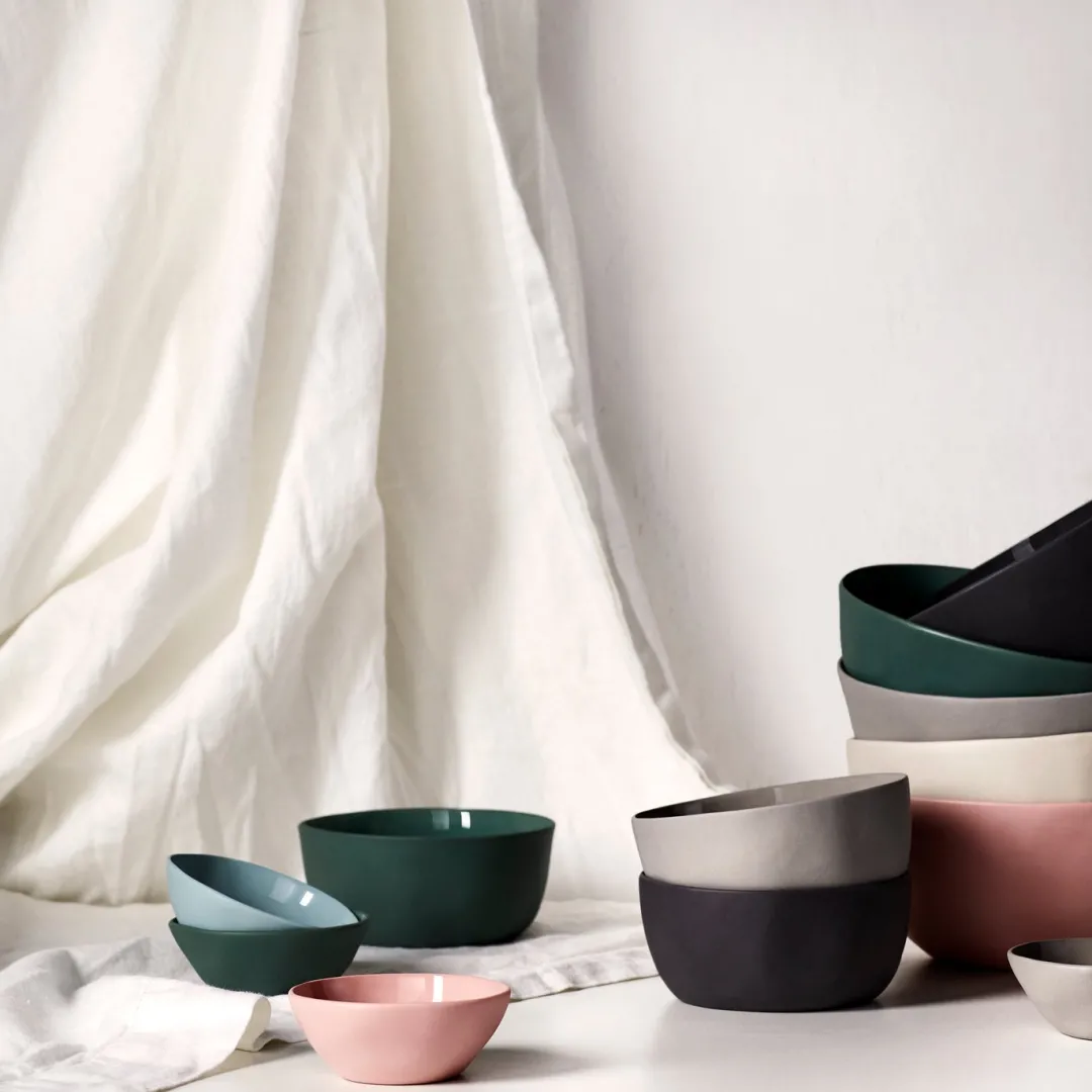 Hand cast ceramic bowl with a subtle irregular shape.