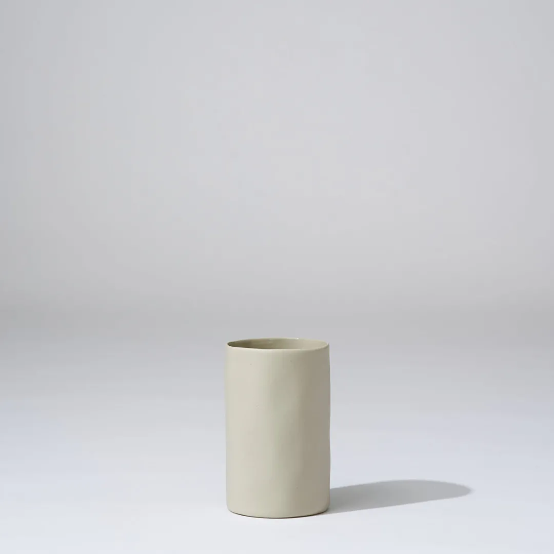 Hand cast cylindrical shaped ceramic vase.8 x 12.5cm