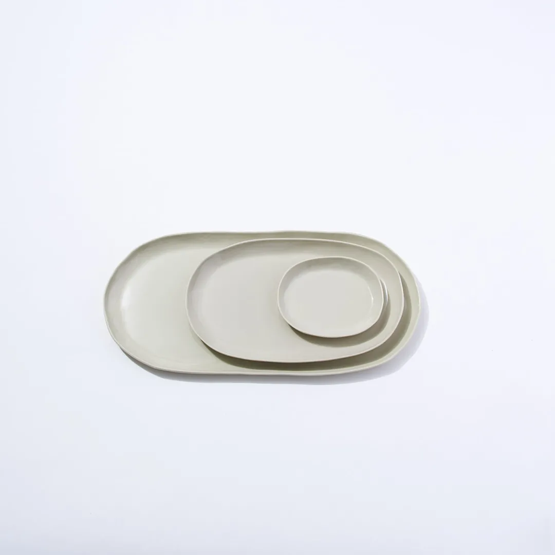 Hand cast ceramic plate with a subtle irregular shape.36 x 17 x 1.5cmAll of our ceramics are safe for both the microwave…