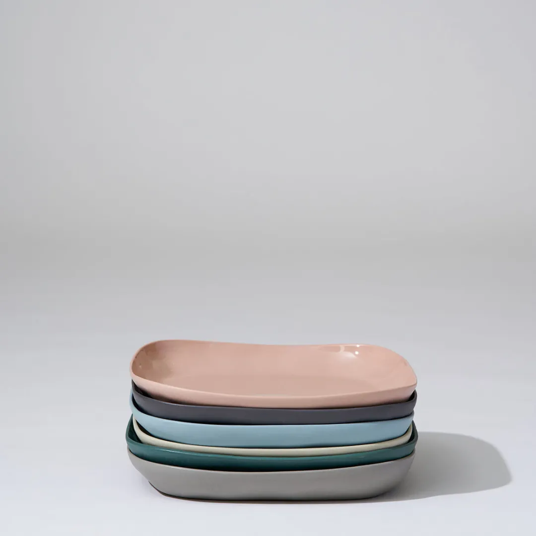 Hand cast ceramic plate with a subtle irregular shape.21 x 21 x 2.5cmAll of our ceramics are safe for both the microwave…